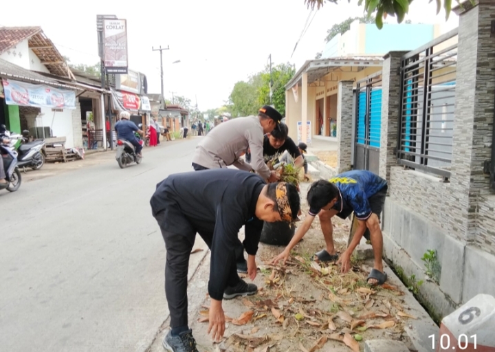 Dalam kegiatan tersebut, personel Polsek Blanakan Brigadir Cawari dan Bripda Budi (Bhabinkamtibmas Ds Blanakan) dan tim membersihkan area perumahan, termasuk trotoar dan saluran air, dari sampah dan material yang mengganggu.
